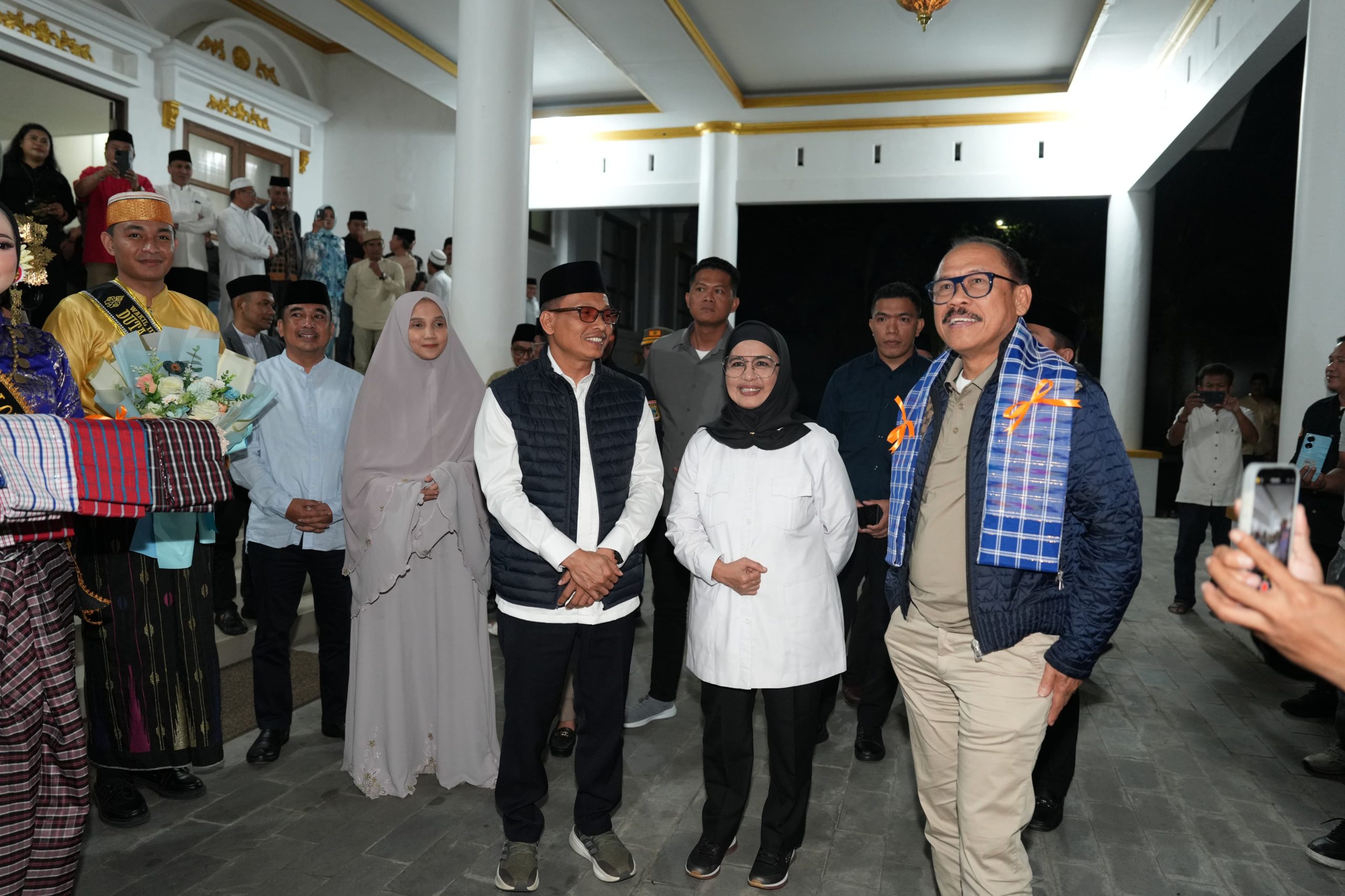 Setelah itu, rombongan melanjutkan perjalanan menuju Bumi Assamalemleuang, Majene. Setibanya di sana, mereka disambut dengan iringan musik rebana dan melaksanakan Salat Subuh bersama masyarakat di Masjid Raya Raudhatul Abidin, Majene.